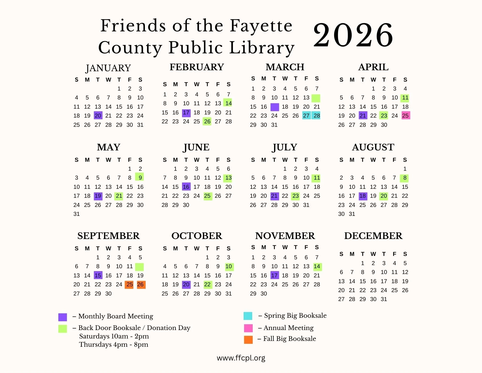 Friends’ Calendar for 2026 Please always check our News and Events page to verify that dates and information on the calendar below have not changed.